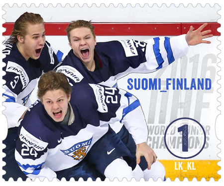 Omakuvapostimerkki nuorten MM-jääkiekon kultajoukkueen kunniaksi tulee myyntiin Postin verkkokauppaan 15. tammikuuta. Kotikisoissa loistaneista Nuorista Leijonista postimerkkiin ikuistetaan Miro Keskitalo, Kasperi Kapanen sekä Vili Saarijärvi. Postimerkin kuvan on ottanut Yelena Rusko heti voittomaalin jälkeen loppuottelussa 5.1.2016. Postimerkin suunnittelusta vastaavat Susanna Rumpu ja Ari Lakaniemi.