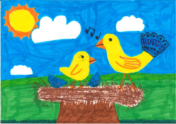 Voittoon ylsi 8-vuotiaan Adelen Kevät -piirustus. Lisäksi järjestäjät palkitsevat kunniakirjalla niin ikään paljon ääniä saaneenVenlan Tipu -piirustuksen.