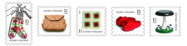 Postimerkeissä esitellään Richard Lindhin Solifer-mopedi, Sanna Annukkan Marimekolle suunnittelema Kukkuluuruu-kuosi, Harri Koskisen Block-valaisin,Birger Kaipiaisen Paratiisi-lautanen, Ilmari Tapiovaaran Madamoiselle-nojatuoli ja Tapio Wirkkalan Ultima Thule -juomalasi.