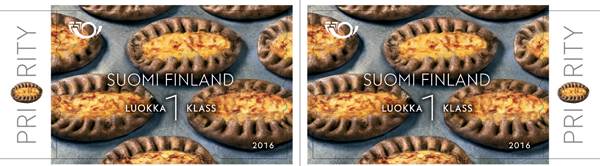 Karjalanpiirakka-postimerkki kuuluu vuoden 2016 yhteispohjoismaiseen Pohjola-Norden -merkkisarjaan, jonka teemana on pohjoismainen ruokakulttuuri.