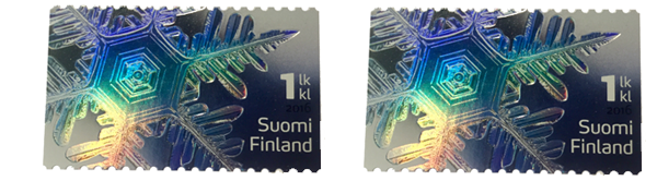 Tammikuussa julkaistavassa talvipostimerkissä kimaltaa jääkide, joka välkkyy painotekniikan ansiosta valossa aivan kuten aidot jääkiteet. Folioarkin päälle on painettu holograafinen folio, joka heijastelee kaikkia spektrin värejä, kun valo osuu siihen eri kulmista. Ari Lakaniemen ja Susannan Rummun suunnitteleman postimerkin värimaailmaa täydentää valkoinen ja sininen lisäväri.